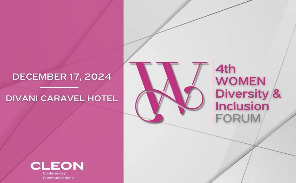 Η CLEON Conferences & Communications διοργανώνει το 4th WOMEN  – DIVERSITY & INCLUSION FORUM, υπό την αιγίδα του ΣΕΒ σύνδεσμος επιχειρήσεων και βιομηχανιών, της Γενικής Γραμματείας Ισότητας & Ανθρωπίνων Δικαιωμάτων, του The Boardroom και του Hellenic Association of Women in Culture & Tourism. Το συνέδριο θα πραγματοποιηθεί την Τρίτη, 17 Δεκεμβρίου 2024 στο Divani Caravel Hotel.